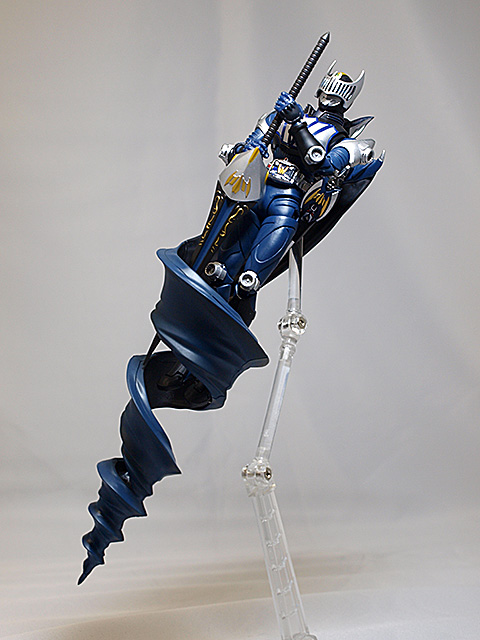 まずはナイトの背中にダークウイングを付けた飛行形態です。ダークウイングの尾は右手の鋭いランス(槍)になります。