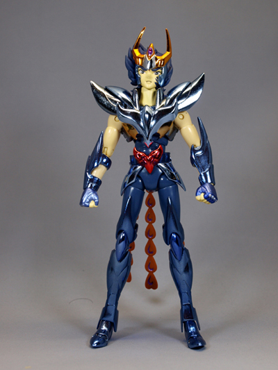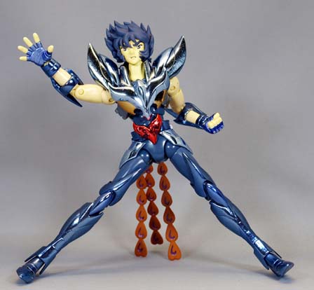 青系のメッキの美しい聖衣です。フィギュアに使用しているのは2nd素体。後に完全にネジ穴や肘の関節部分が改良された3rd素体の元になった素体です。可動範囲が最初の1st素体に較べ大幅にアップしています。